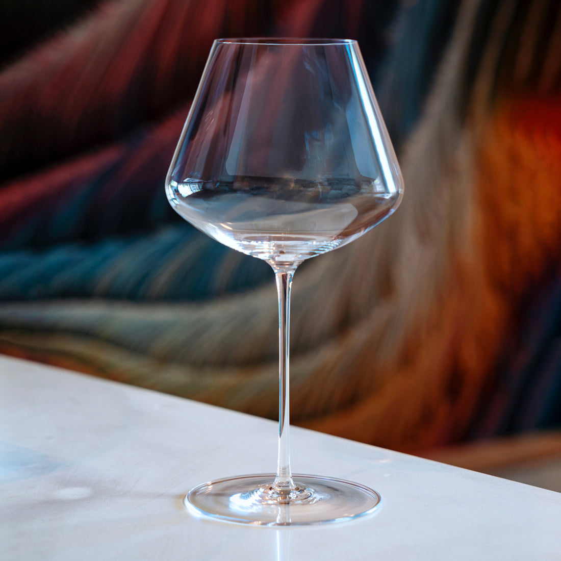 A generously proportioned glass inspired by classic Burgundy and Barolo shapes, designed to give complex wines room to breathe and reveal their full character. Its form encourages aeration and focuses the delivery, enhancing delicate aromatics and softening tannins for a more harmonious tasting experience.